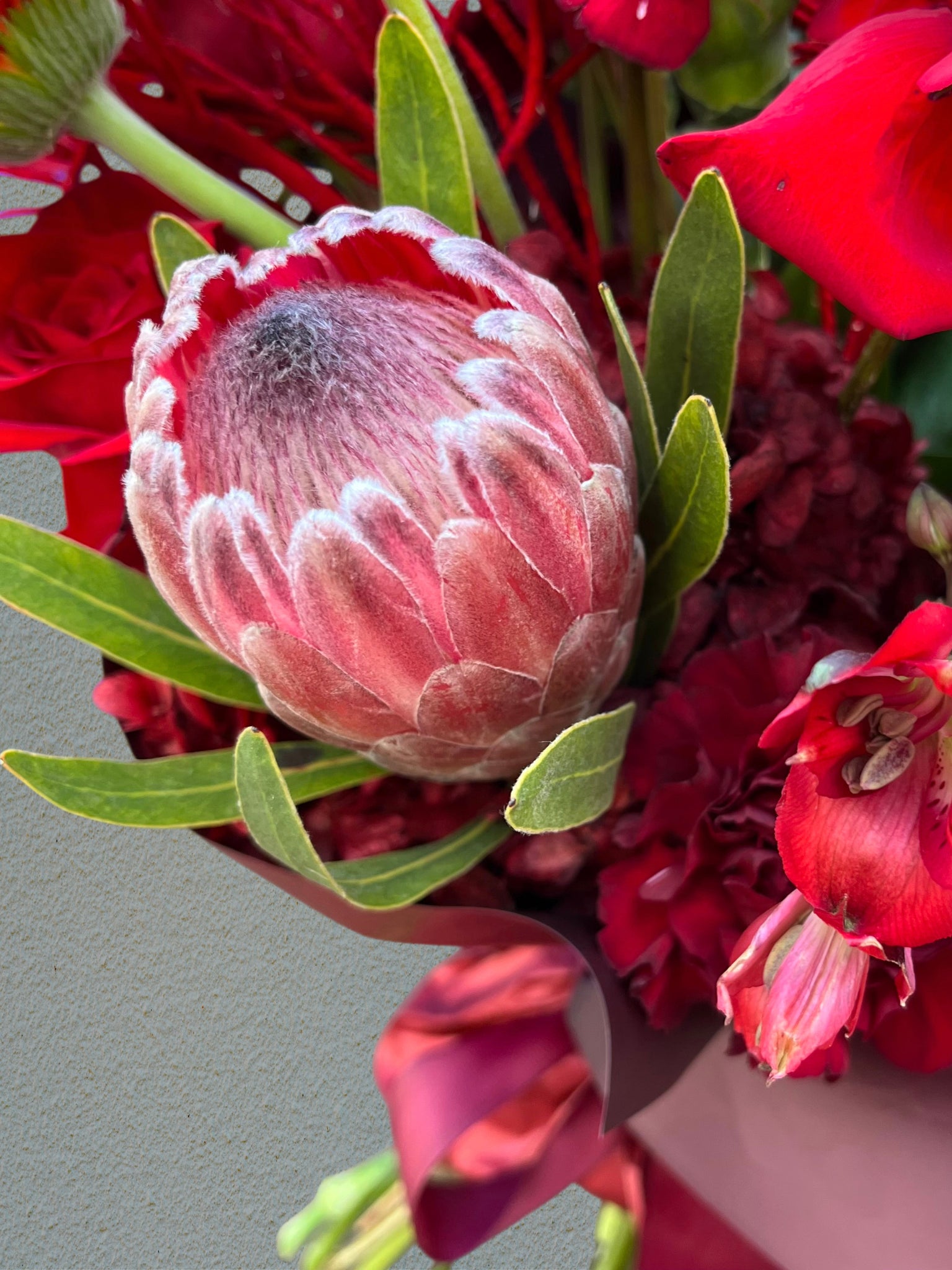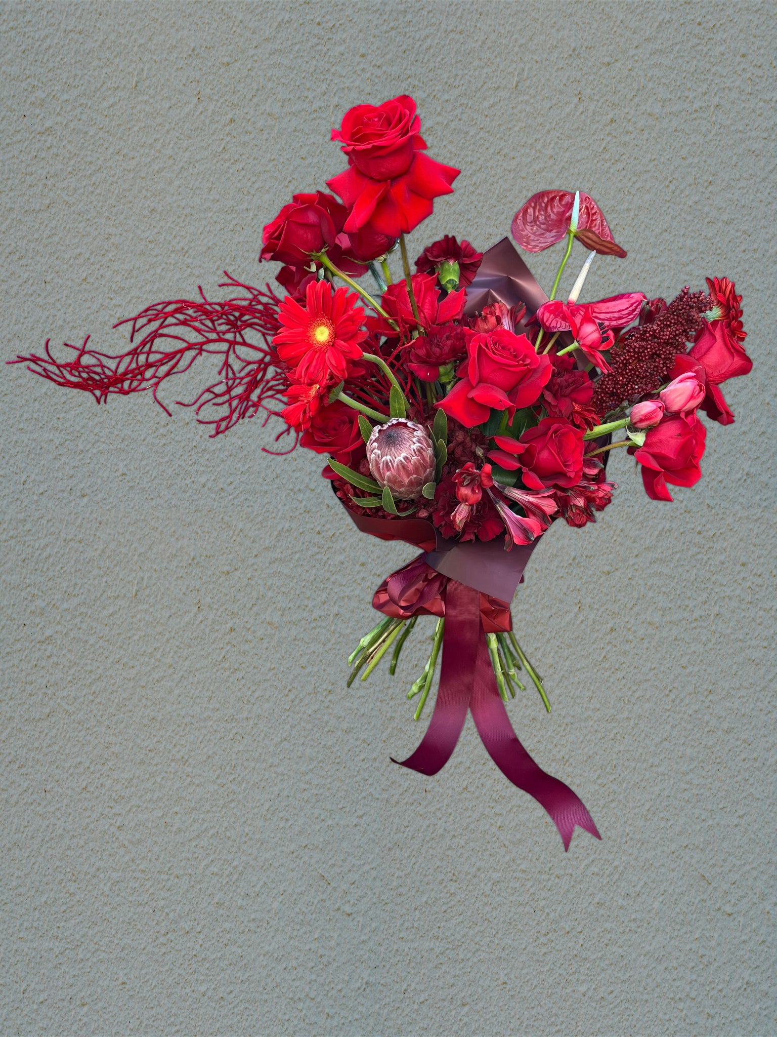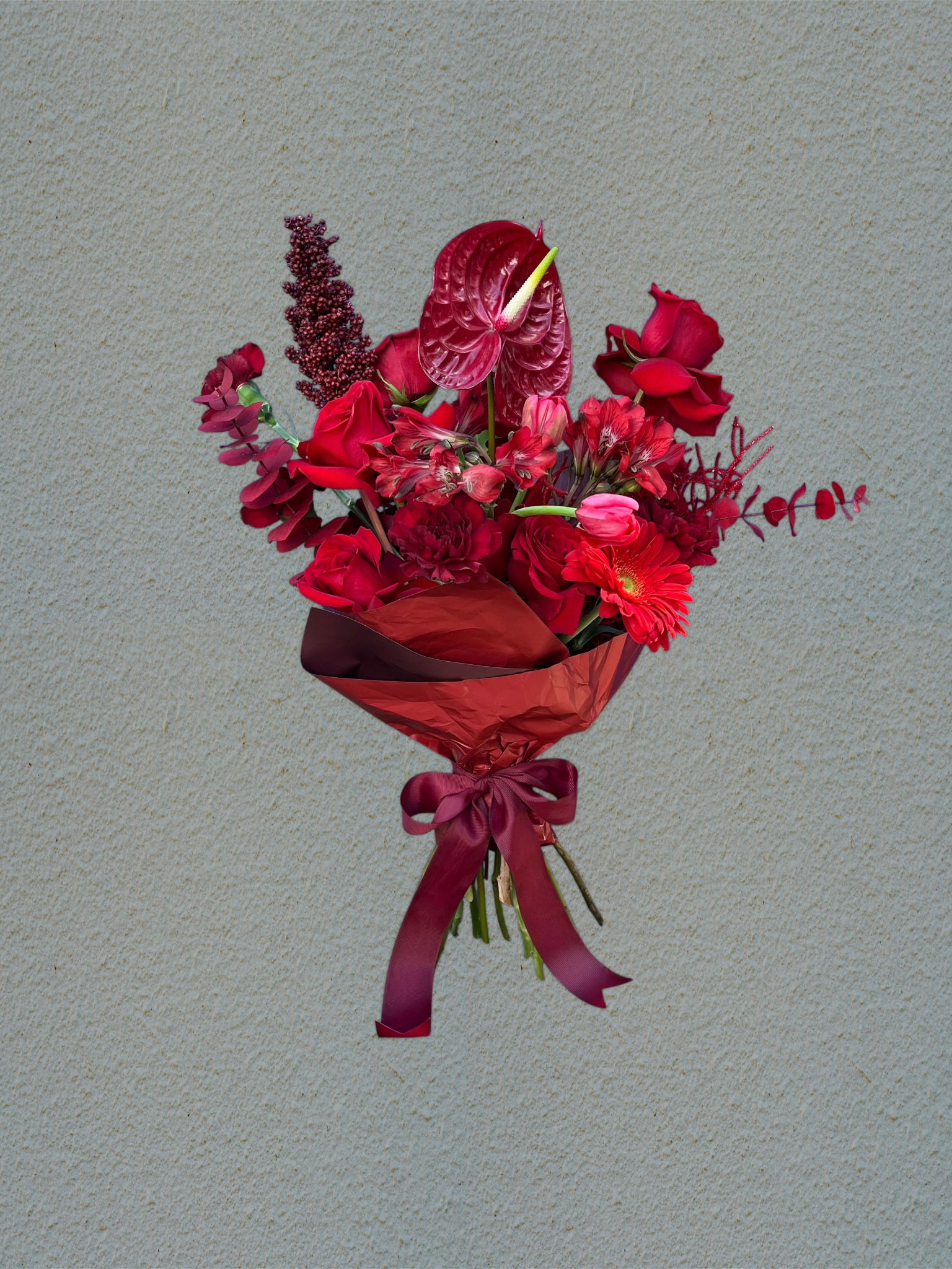 Rouge es un diseño impactante que celebra la intensidad de las emociones. En un solo tono, este arreglo logra una profundidad expresiva que dice mucho sin palabras. Perfecto para sorprender, seducir o declarar con fuerza lo que se siente.