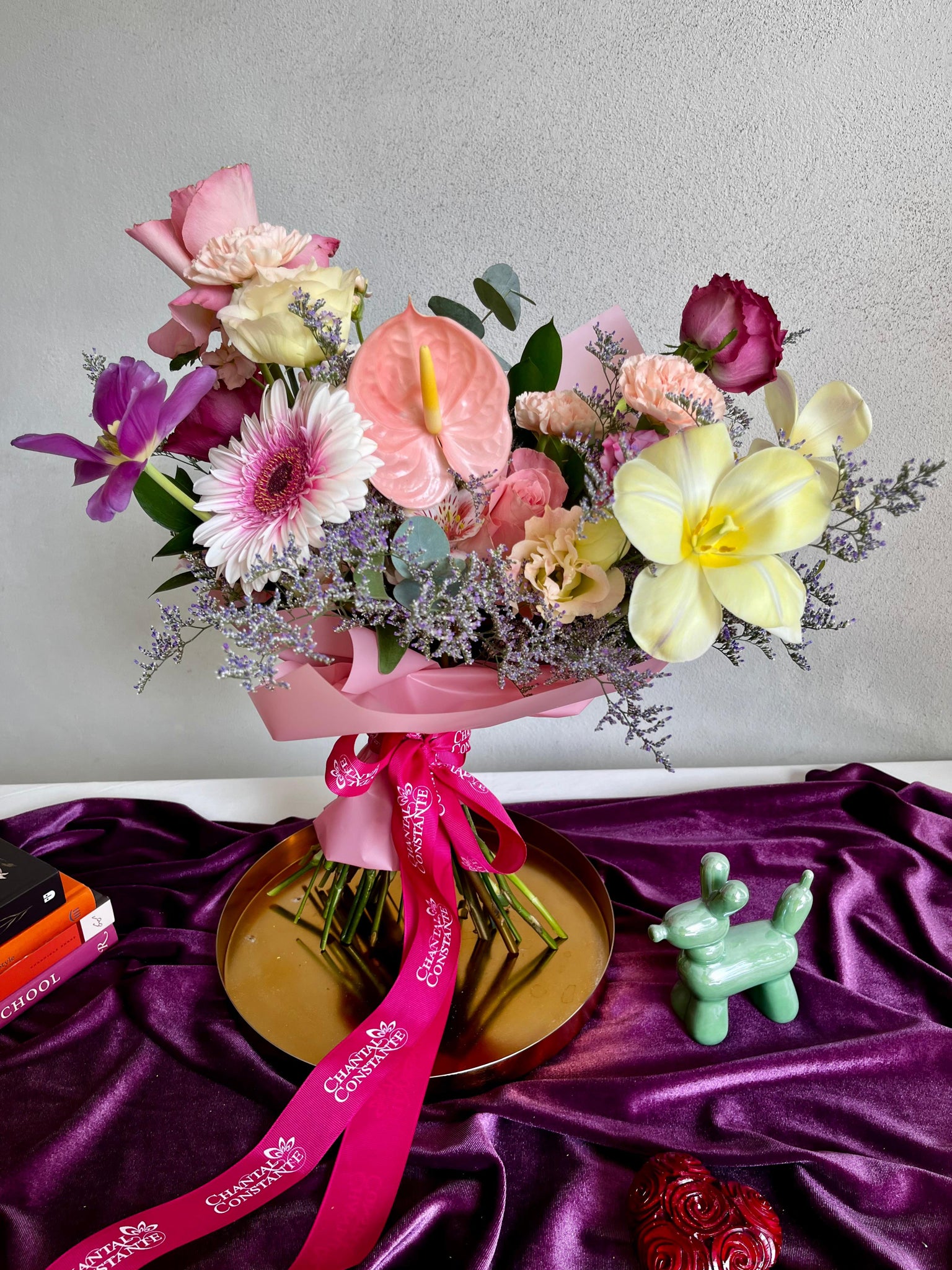 Para un abrazo dulce, cariñoso y elegante 🌸💜… ya sea en bouquet o en arreglo con base de cerámica color rosa, que mamá podrá reutilizar para decorar su casa💕